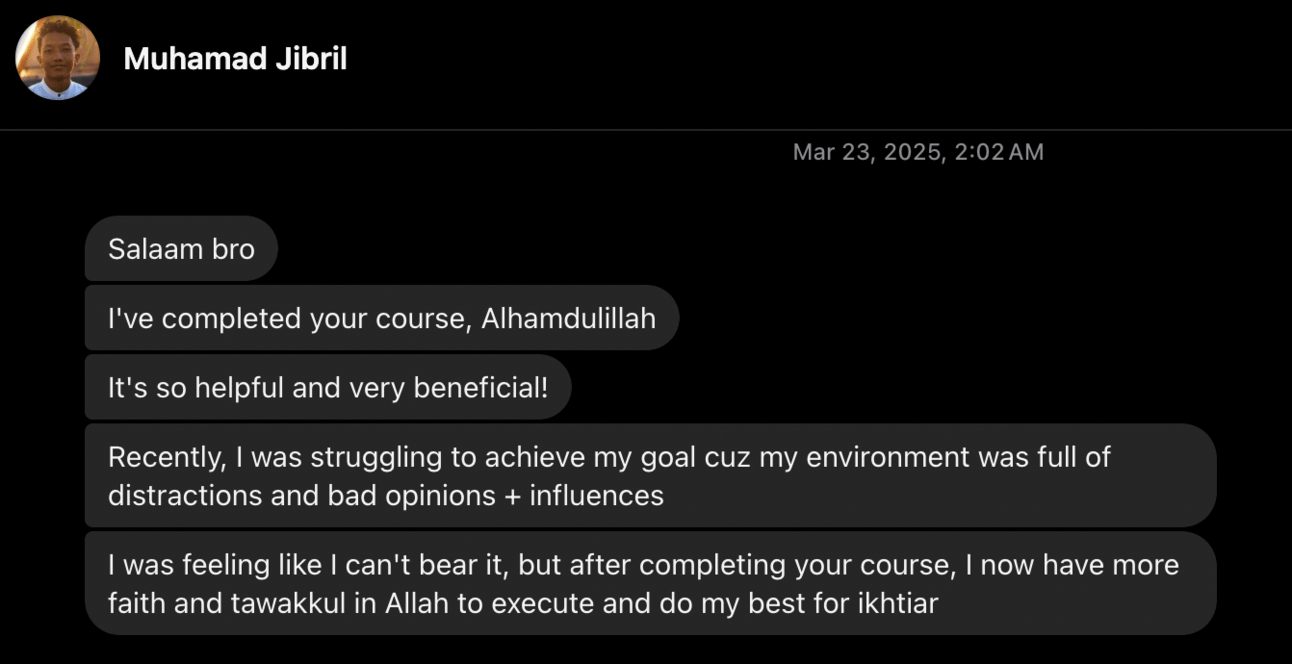 Before we begin: Brother Jibril completed my Dua + Strategic Action course and here’s what he had to say: